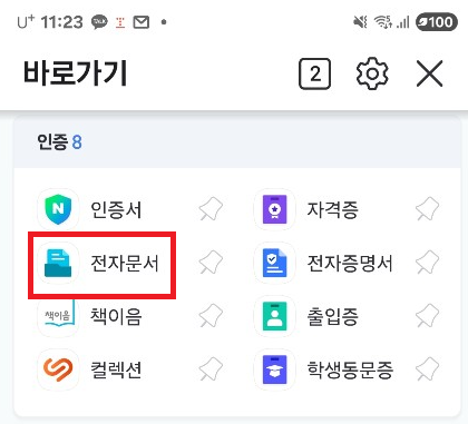 2. 화면 아래도 내려가 [인증] 에서 [전자문서] 누른다.